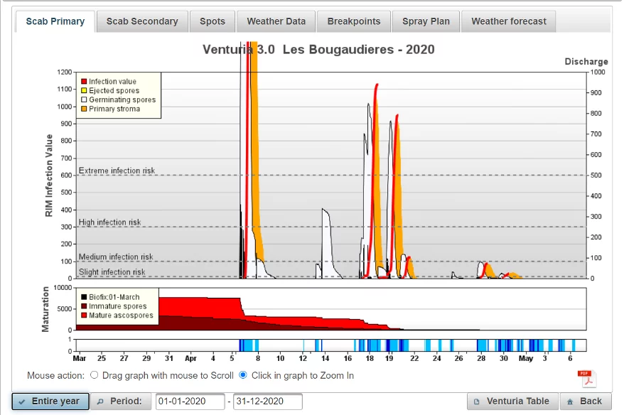 RIMpro koristi podatke o vremenskim uslovima i biološkim ciklusima patogena i insekata kako bi predvideo njihov razvoj i unapred ukazao na kritične trenutke za pojavu infekcija ili napada.